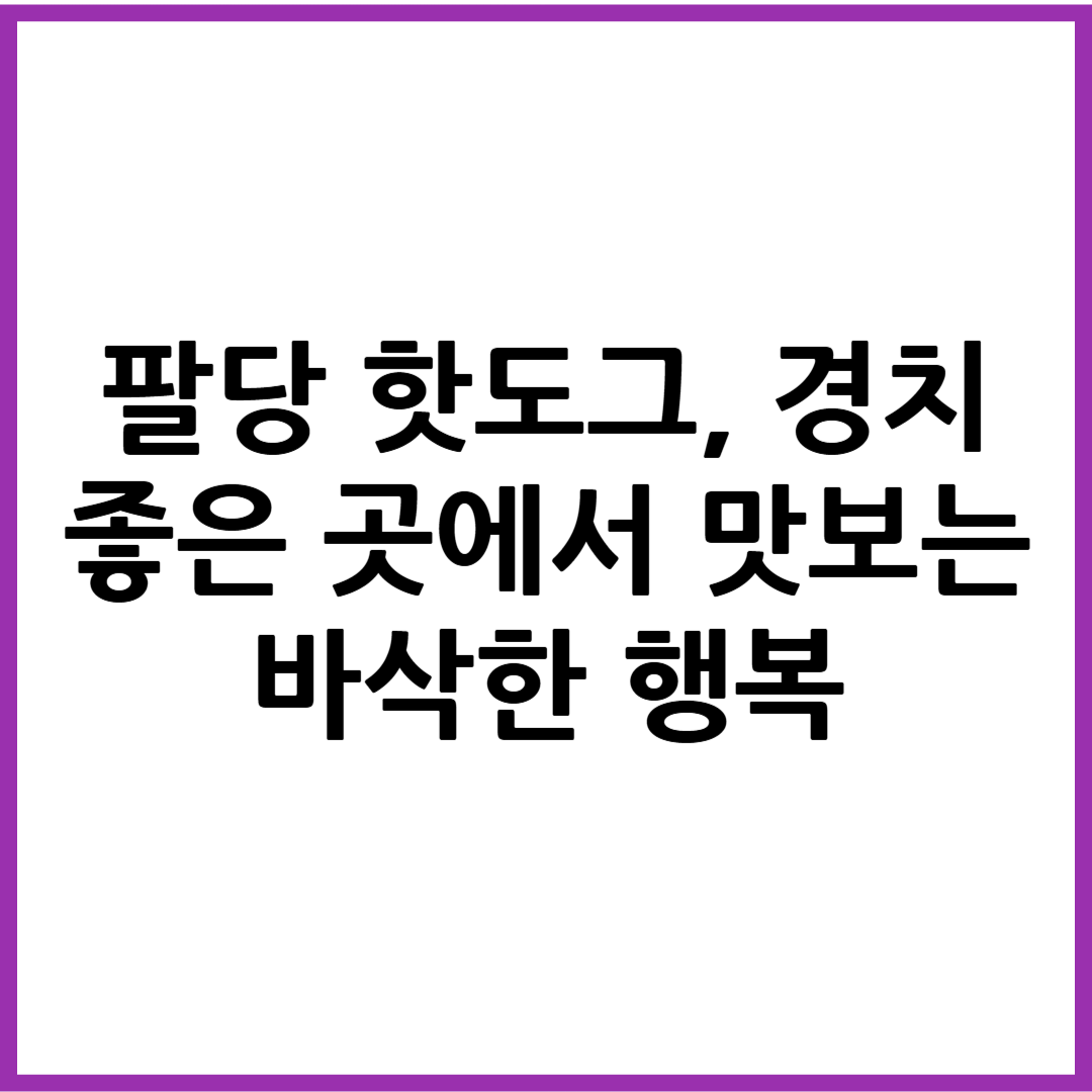 서울 근교 드라이브 명소로 유명한 팔당. 그중에서도 요즘 SNS를 중심으로 입소문을 타고 있는 푸드 핫플이 바로 ‘팔당 핫도그’입니다. 단순한 간식이 아닌 풍경, 분위기, 맛 모두를 만족시키는 팔당핫도그는, 주말 나들이나 데이트 코스로도 인기를 끌고 있습니다. 이번 글에서는 팔당핫도그 맛집 정보부터 위치, 메뉴, 현장 분위기, 이용 팁까지 한눈에 확인할 수 있도록 소개해드립니다.